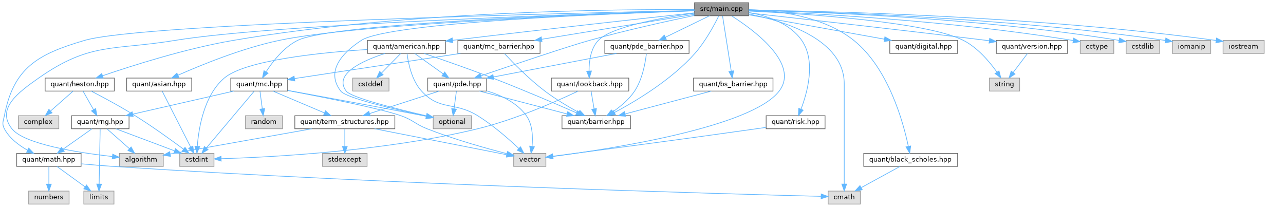 #include "quant/american.hpp"#include "quant/asian.hpp"#include "quant/barrier.hpp"#include "quant/black_scholes.hpp"#include "quant/bs_barrier.hpp"#include "quant/digital.hpp"#include "quant/heston.hpp"#include "quant/lookback.hpp"#include "quant/math.hpp"#include "quant/mc.hpp"#include "quant/mc_barrier.hpp"#include "quant/pde.hpp"#include "quant/pde_barrier.hpp"#include "quant/risk.hpp"#include "quant/version.hpp"#include <algorithm>#include <cctype>#include <cmath>#include <cstdlib>#include <iomanip>#include <iostream>#include <optional>#include <string>#include <vector>